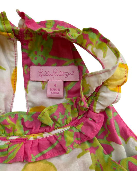 4T Toddler Girls Lilly Pulitzer Halter Pink Floral Daisy Sleeveless Maxi Dress.