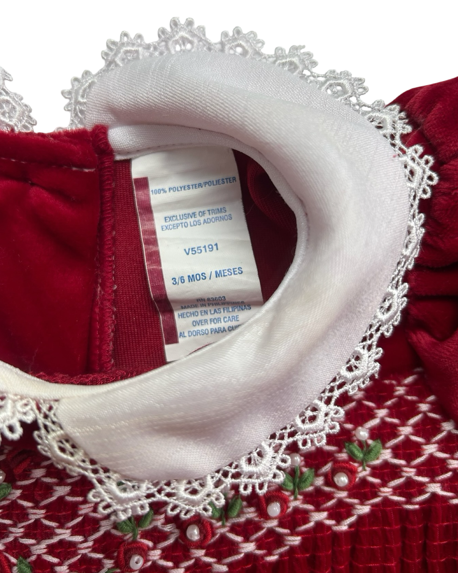 0-3M Baby Girls Little Bitty Embroidered Velvet Dress.