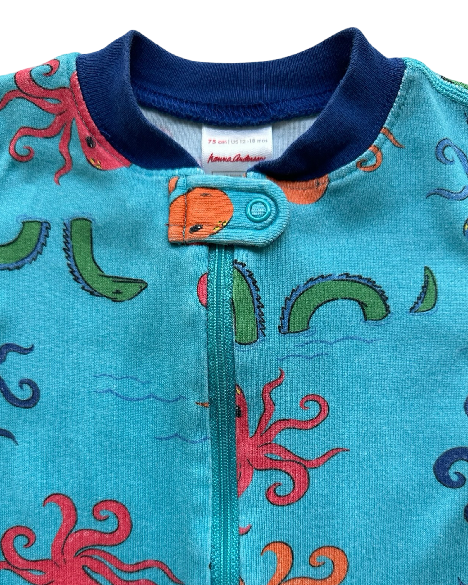 12M-18M Baby Boy Hanna Andersson Organic Cotton Octopus 🐙 Zippered Sleeper PJs