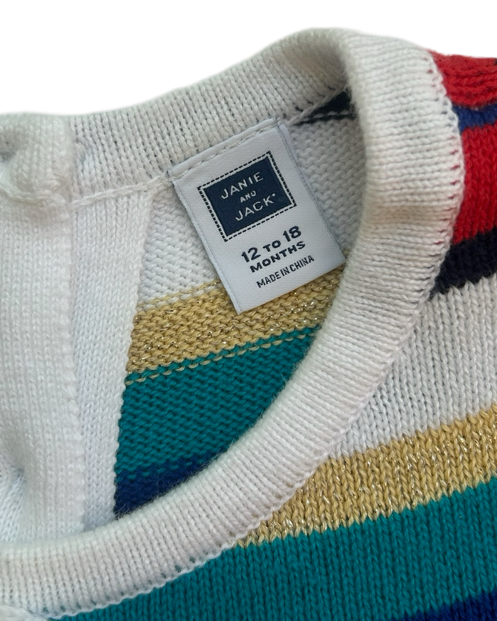 12M -18M Baby Girls Janie & Jack Striped Short Sleeve Dress.