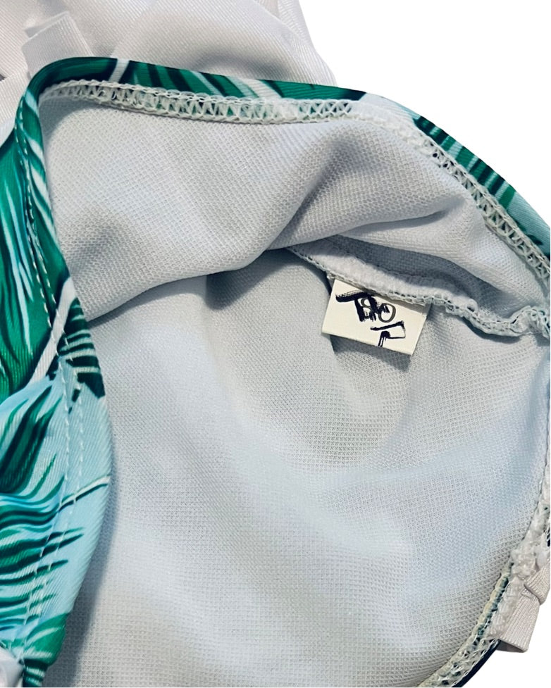 12M-18M Baby Girl Boutique Green Fern Palm One Piece Green / White Swim Suit