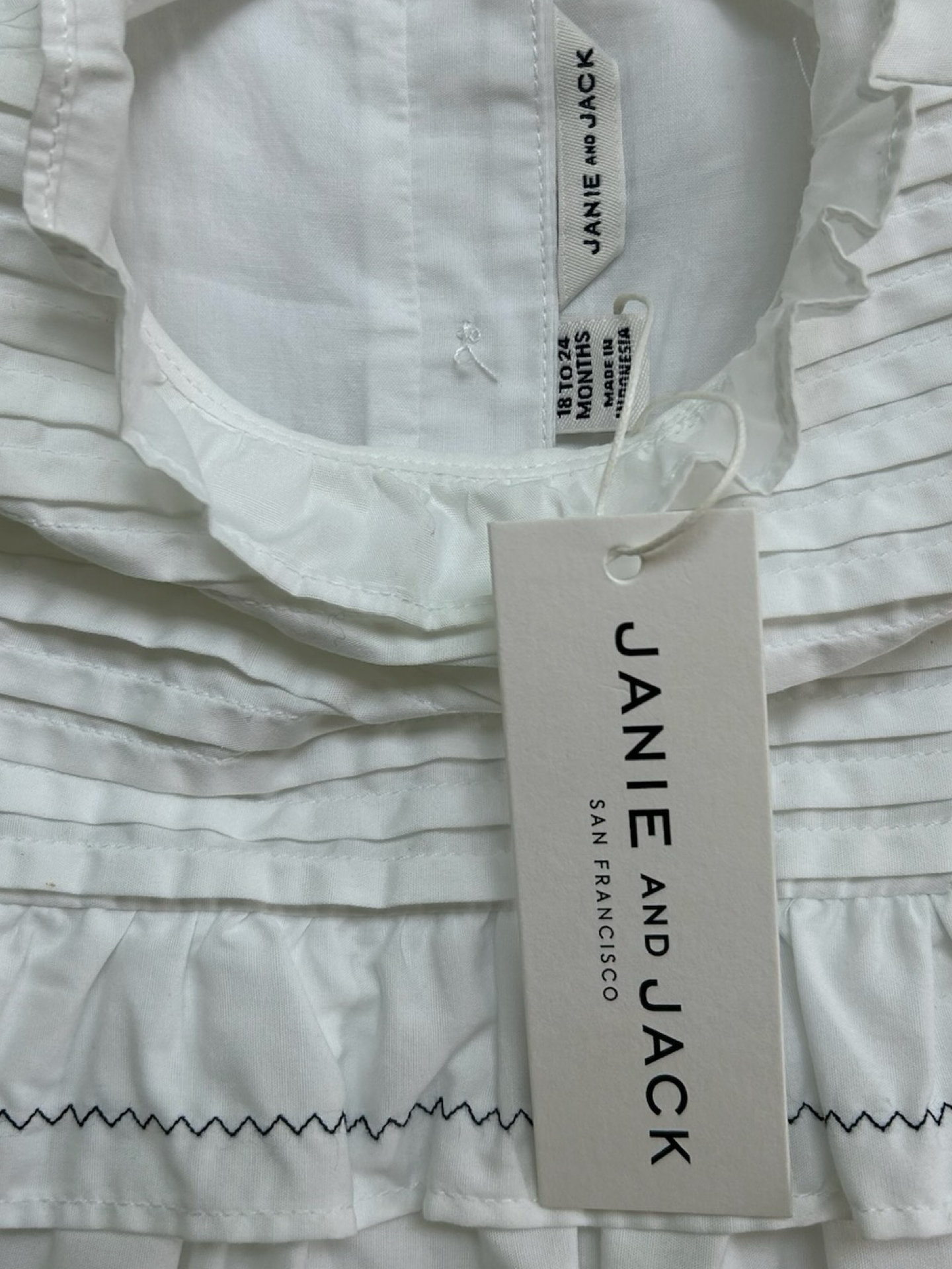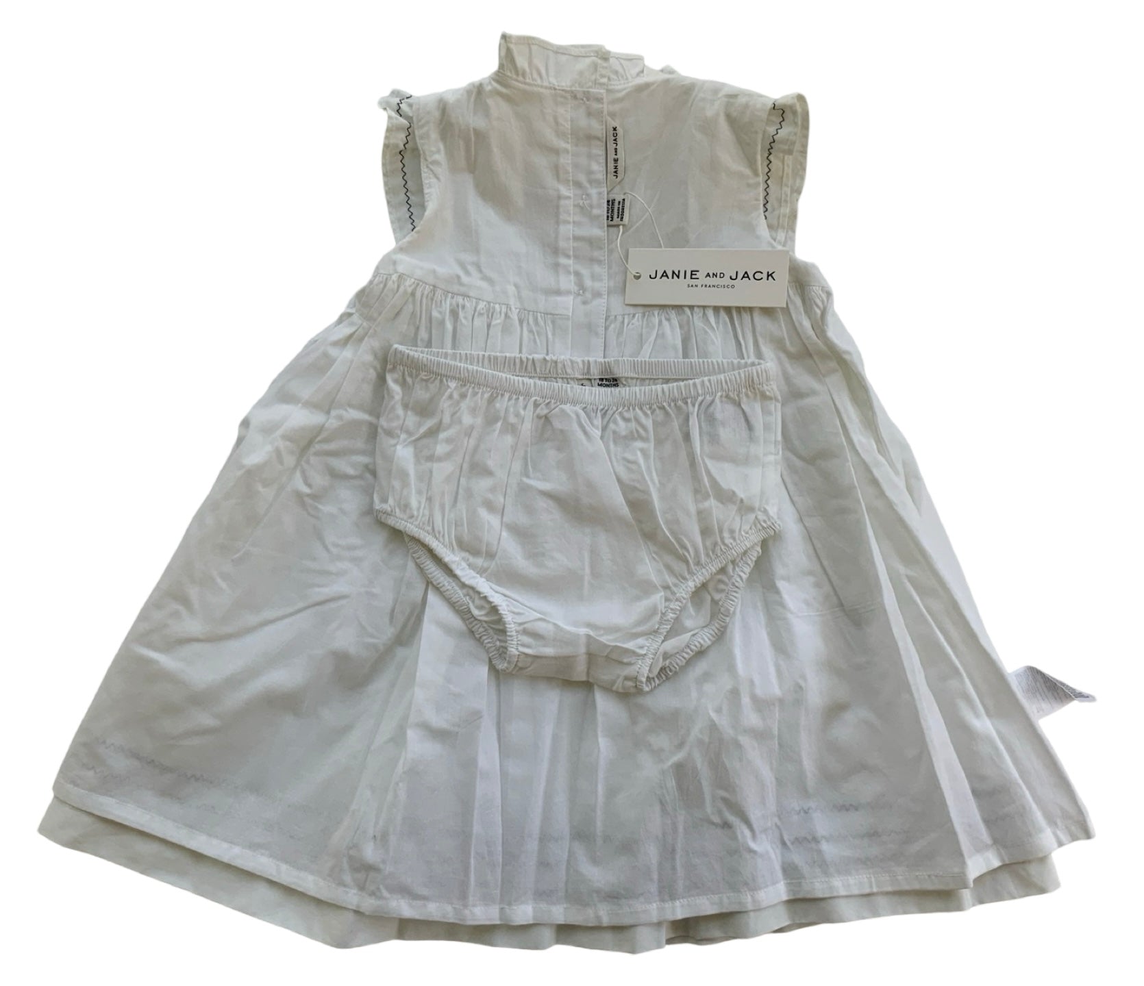 18-24M Baby Girls Janie & Jack Crips Pleating To The Ruffle, Zig-Zag Details And Diaper Cover 2 Pieces Set