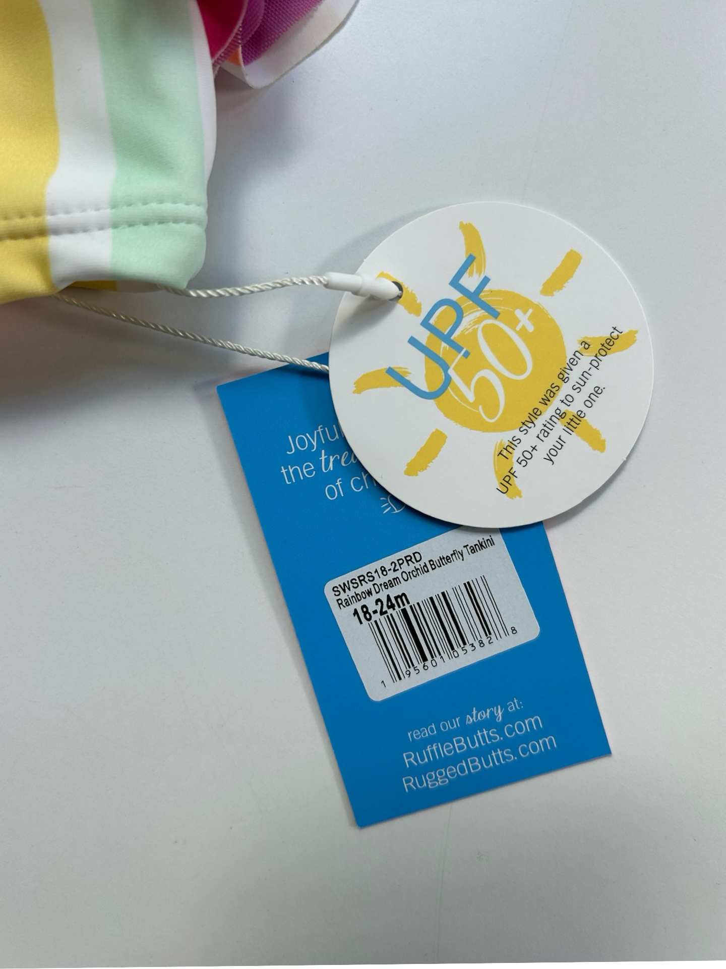 18M - 24M Baby Girls RuffleButts Rainbow Dream Orchid Butterfly Tankini 2 Pieces Set. NWT