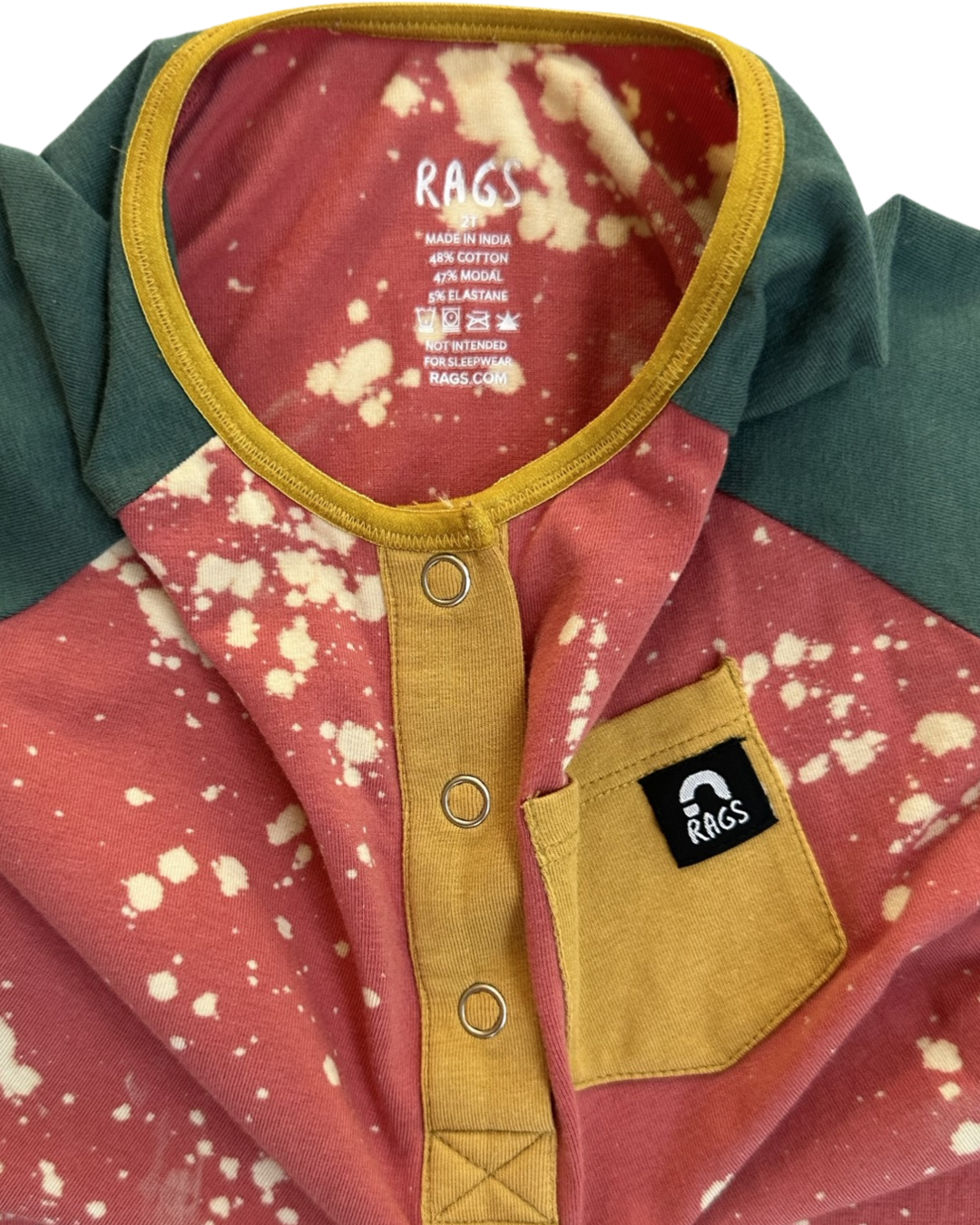 2T Toddler Boy RAGS to Raches Red / Yellow & Green Acid Wash Long Sleeve Romper