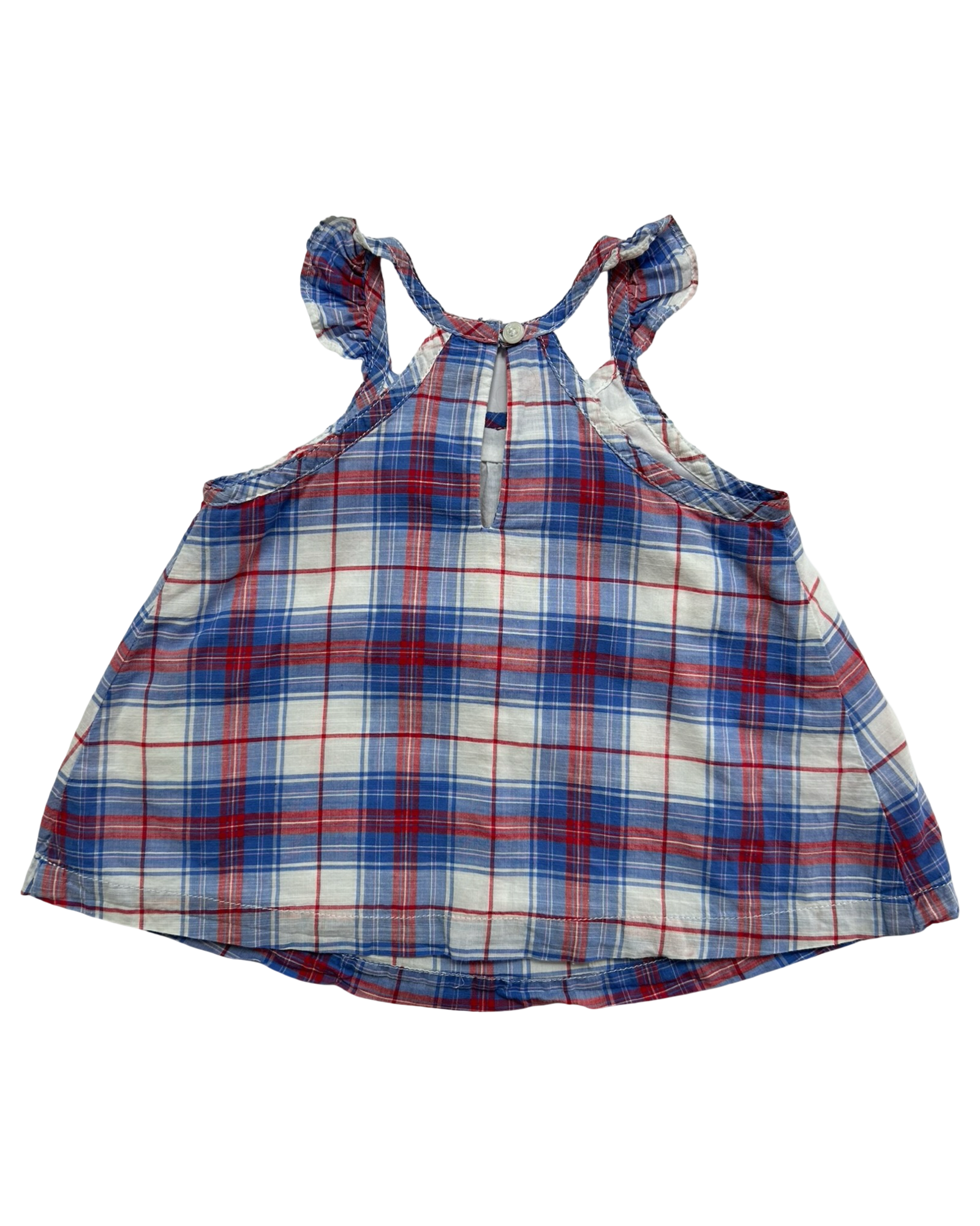 2T Toddler Girl Baby Gap Patriotic Plaid With Flutter Sleeves And Ruffle Neckline Tunic Top