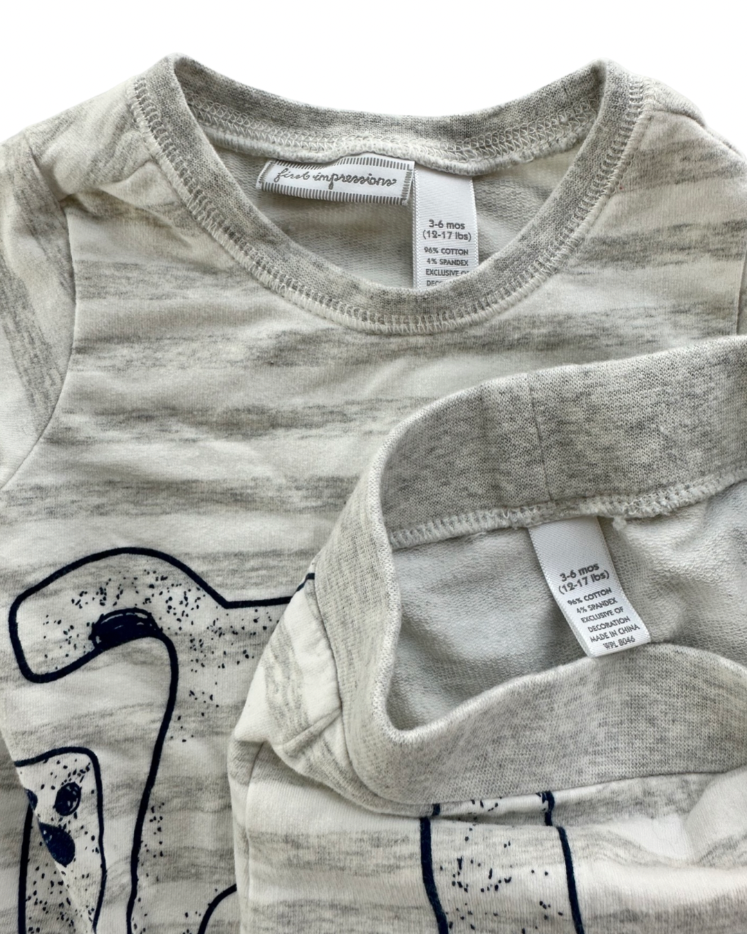 3-6M Baby Boy First Impressions Gray Striped Dog Outfit / PJs