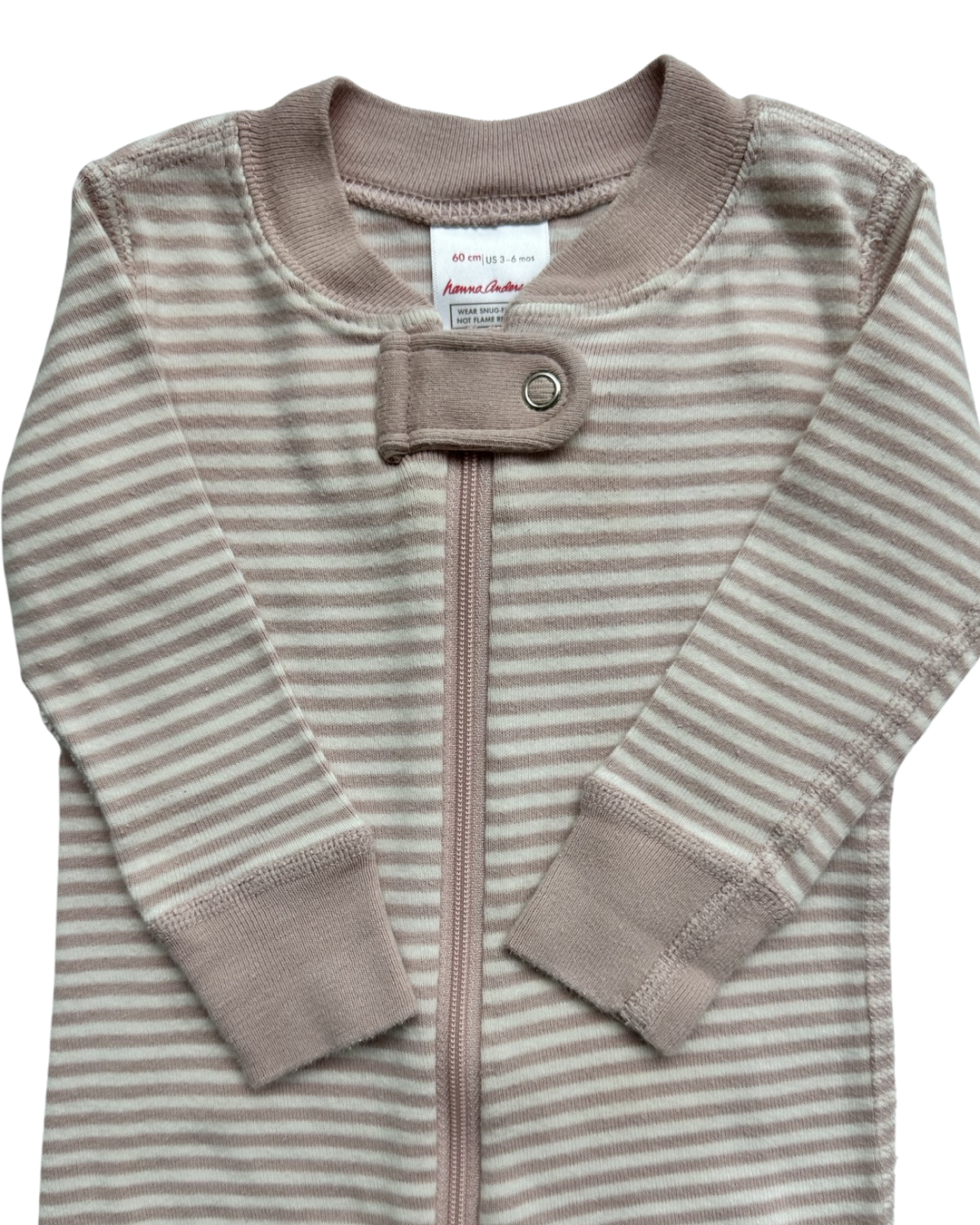 3-6M Baby Girl Hanna Andersson Dusty Rose Striped Zippered Sleeper PJs