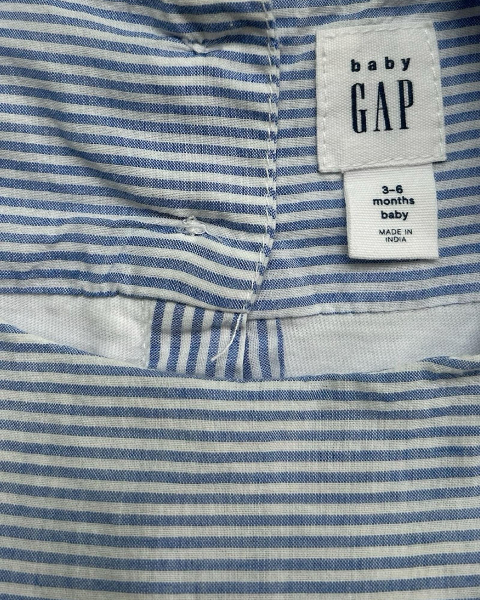 3M-6M Baby Girl Baby Gap Light Blue / White Striped Onesie Embroidered Dress One Piece.