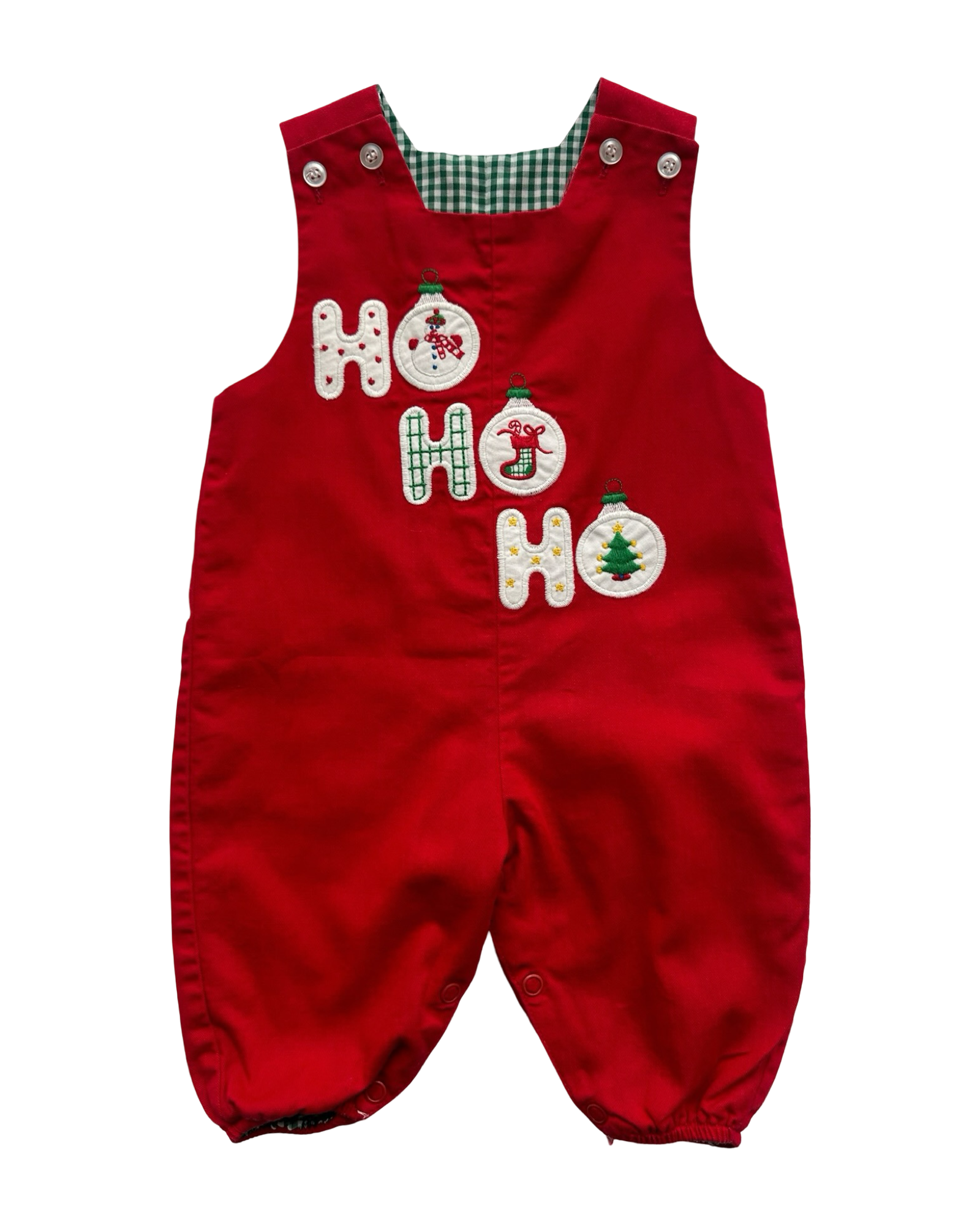 3M Baby Boys The Bailey Boys Gingham Patterned Overall-Romper Reversible Appliqués HO HO HO Ornaments Reverse 🕰️. One Piece.