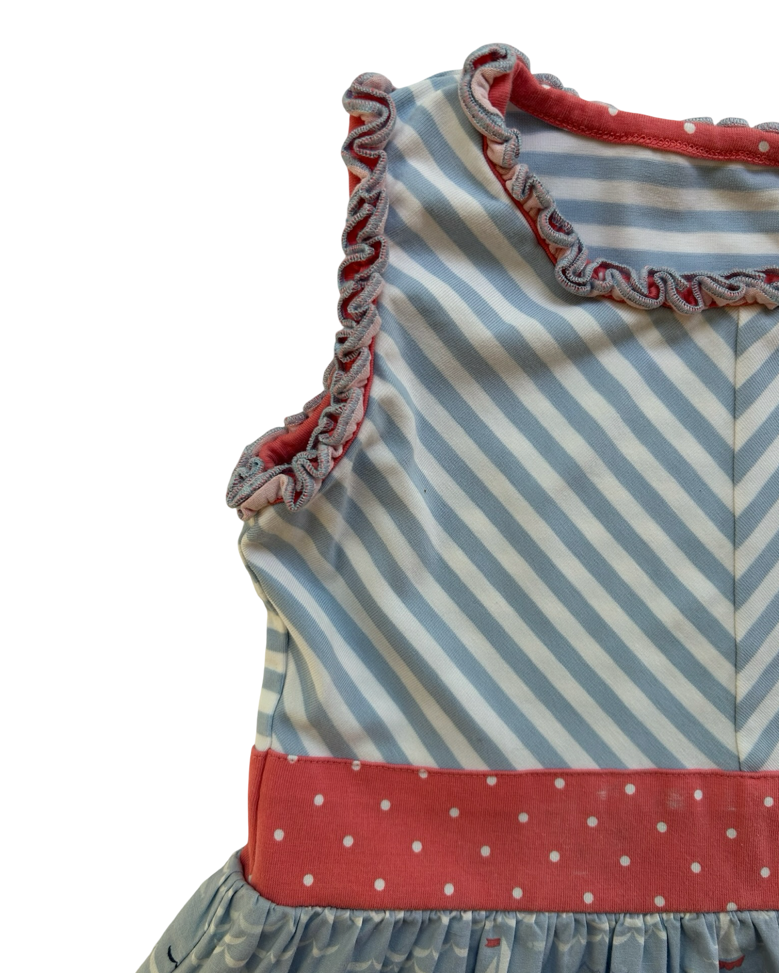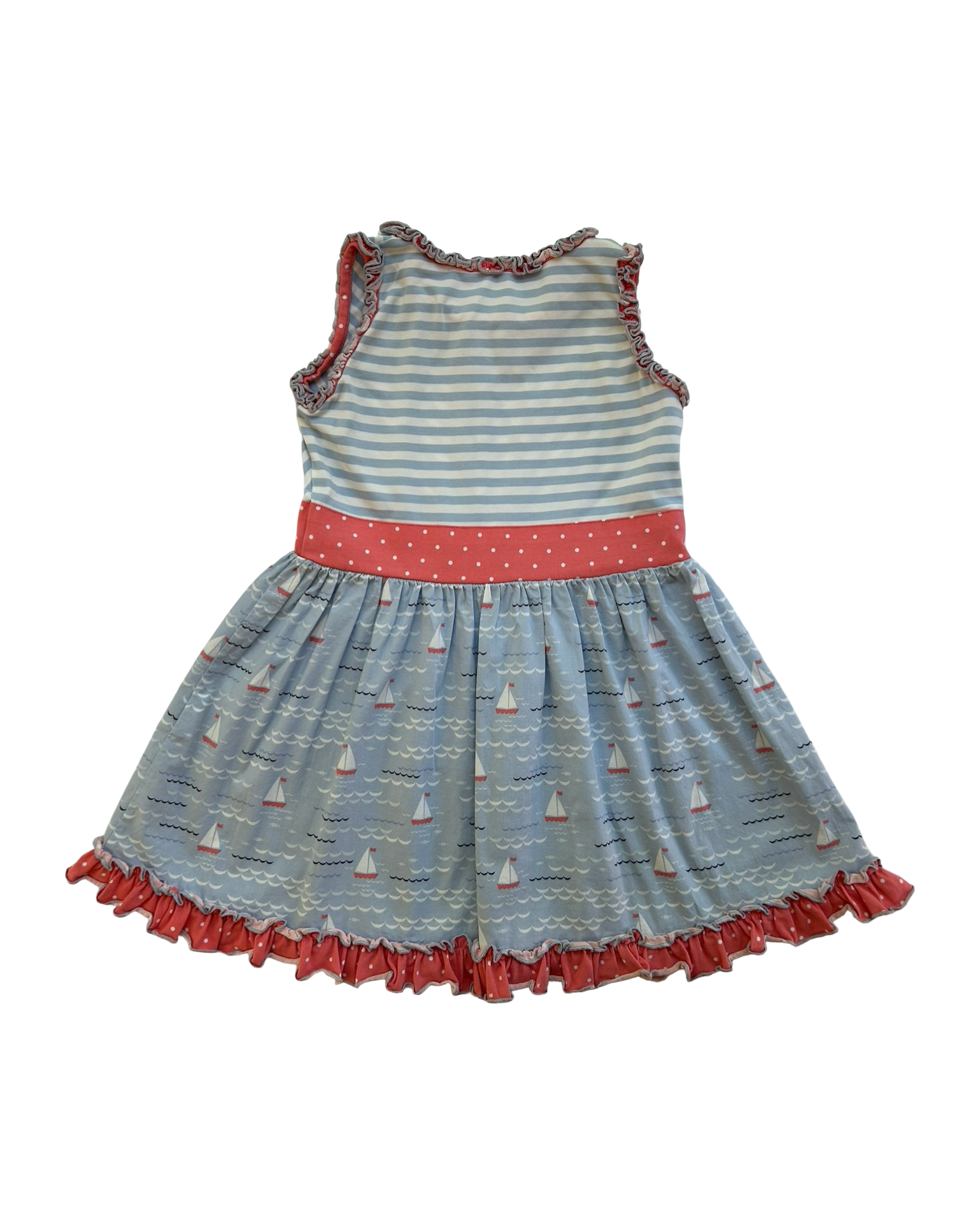 4T-5T Toddlers Girls Serendipity By Shrimp & Grits Theme Nautical Sailboat ⛵️ Striped ,Polka Dots Ruffle Trim Dress.