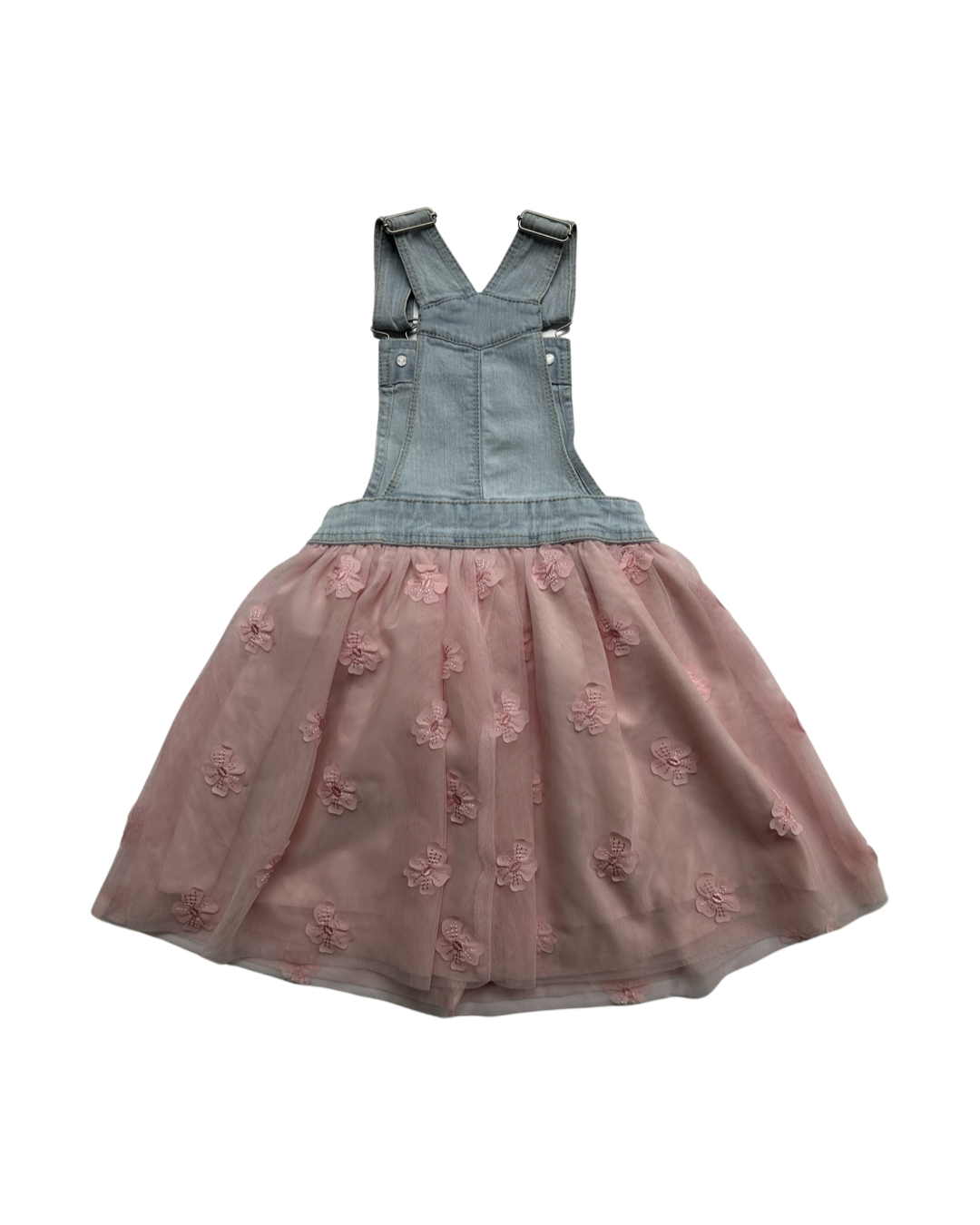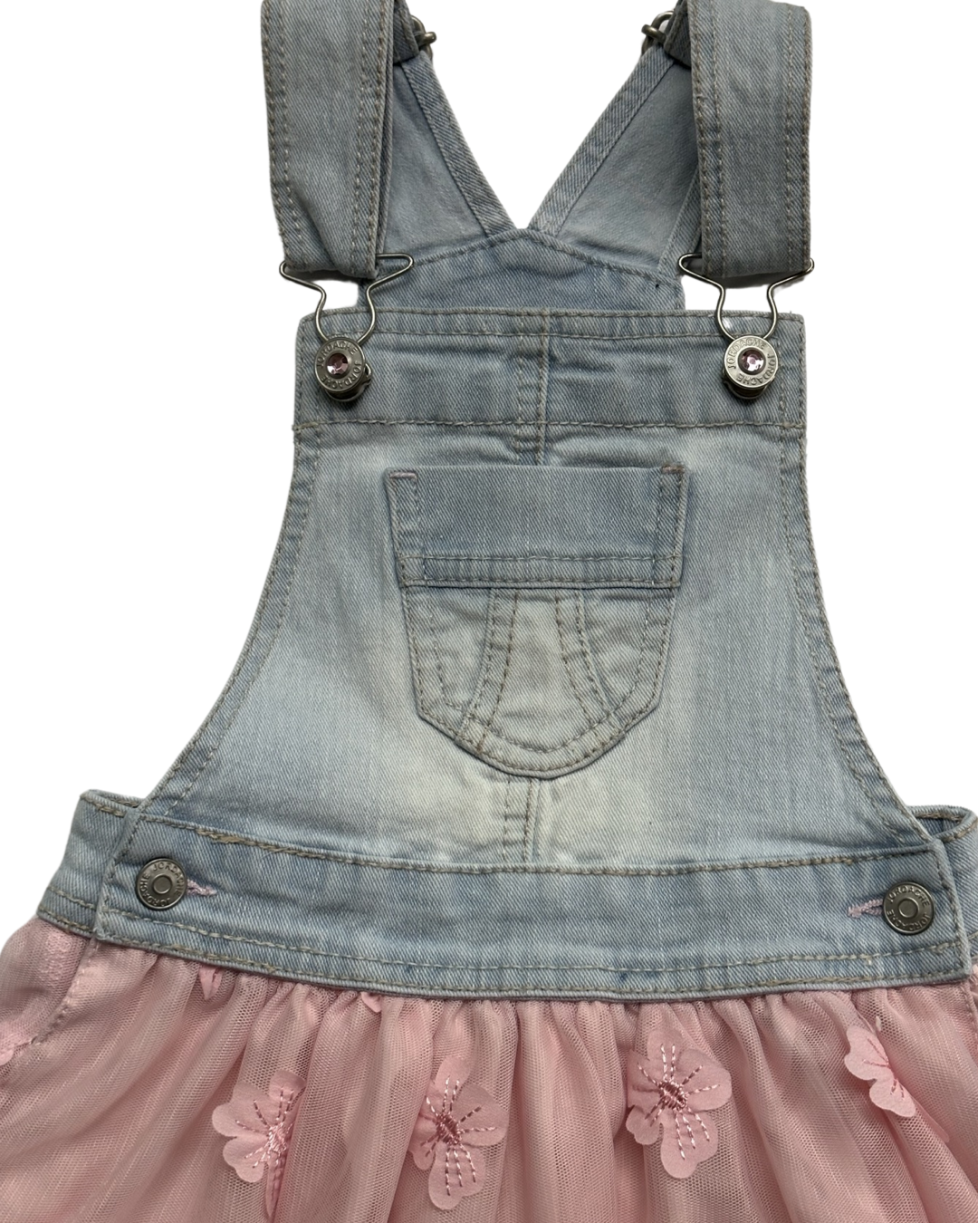 4T Toddler / 5T Toddler Girl Jordache Blue Jean Overall Pink Floral Tutu Dress