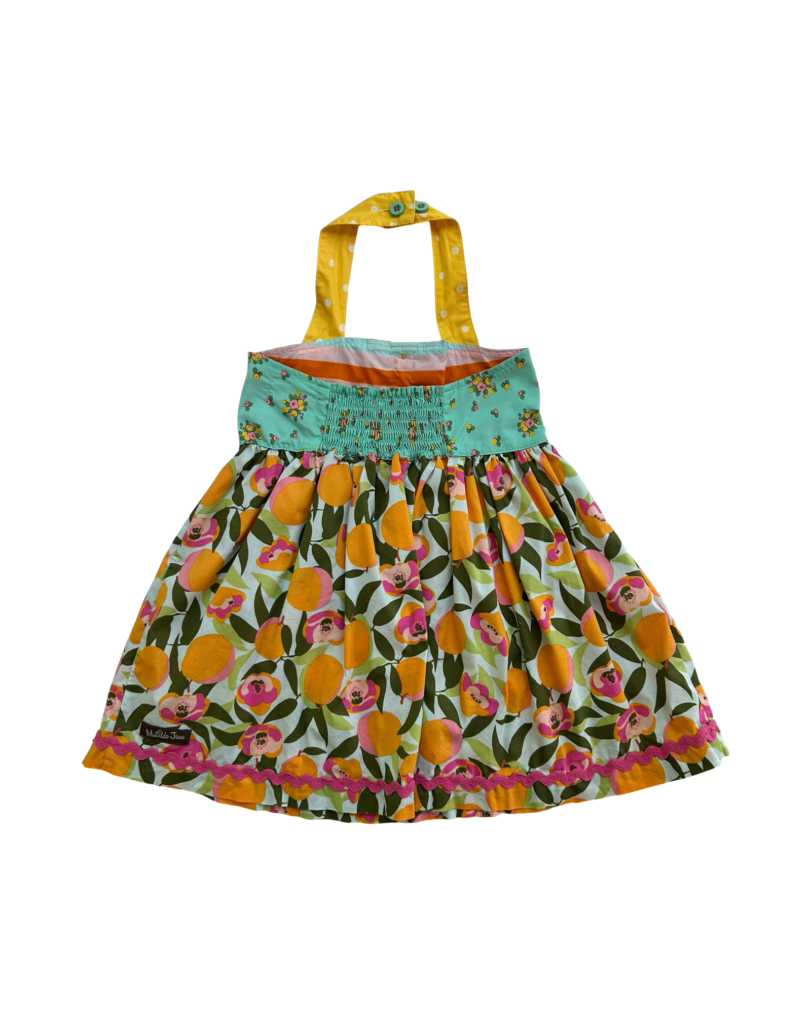 4T Toddler Girl Matilda Jane You’re A peach Halter Tunic Top And Stripe Ruffle Short 2 Piece Set.