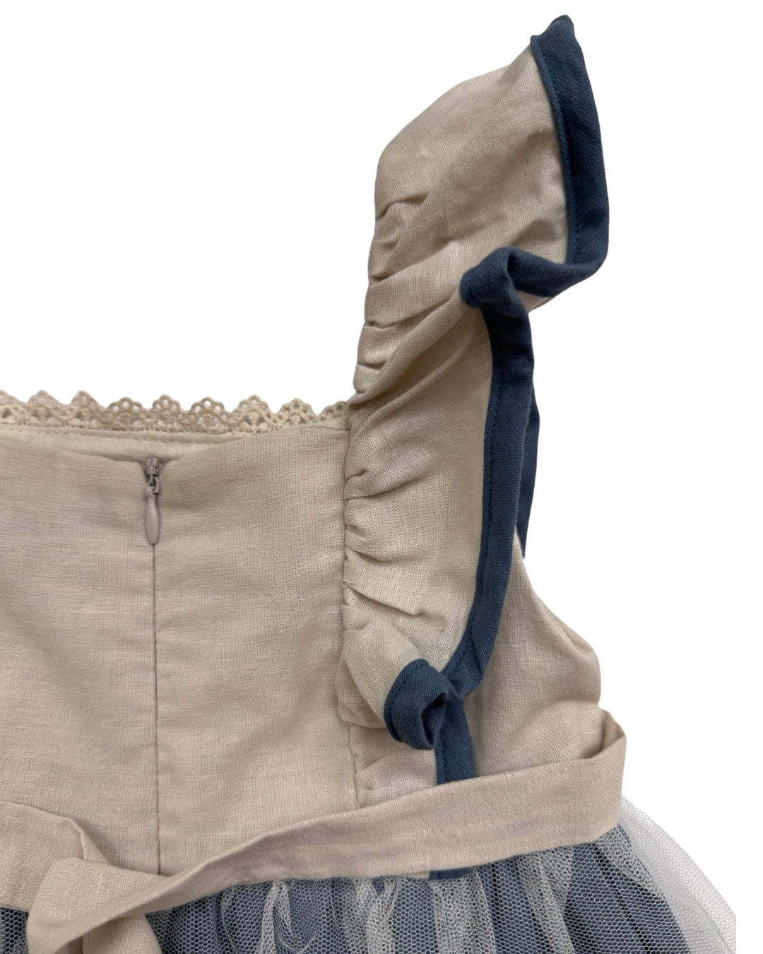 4T Toddler Girl Only Little Once Flutter Sleeve Tulle Dress with Floral Embroidered Top