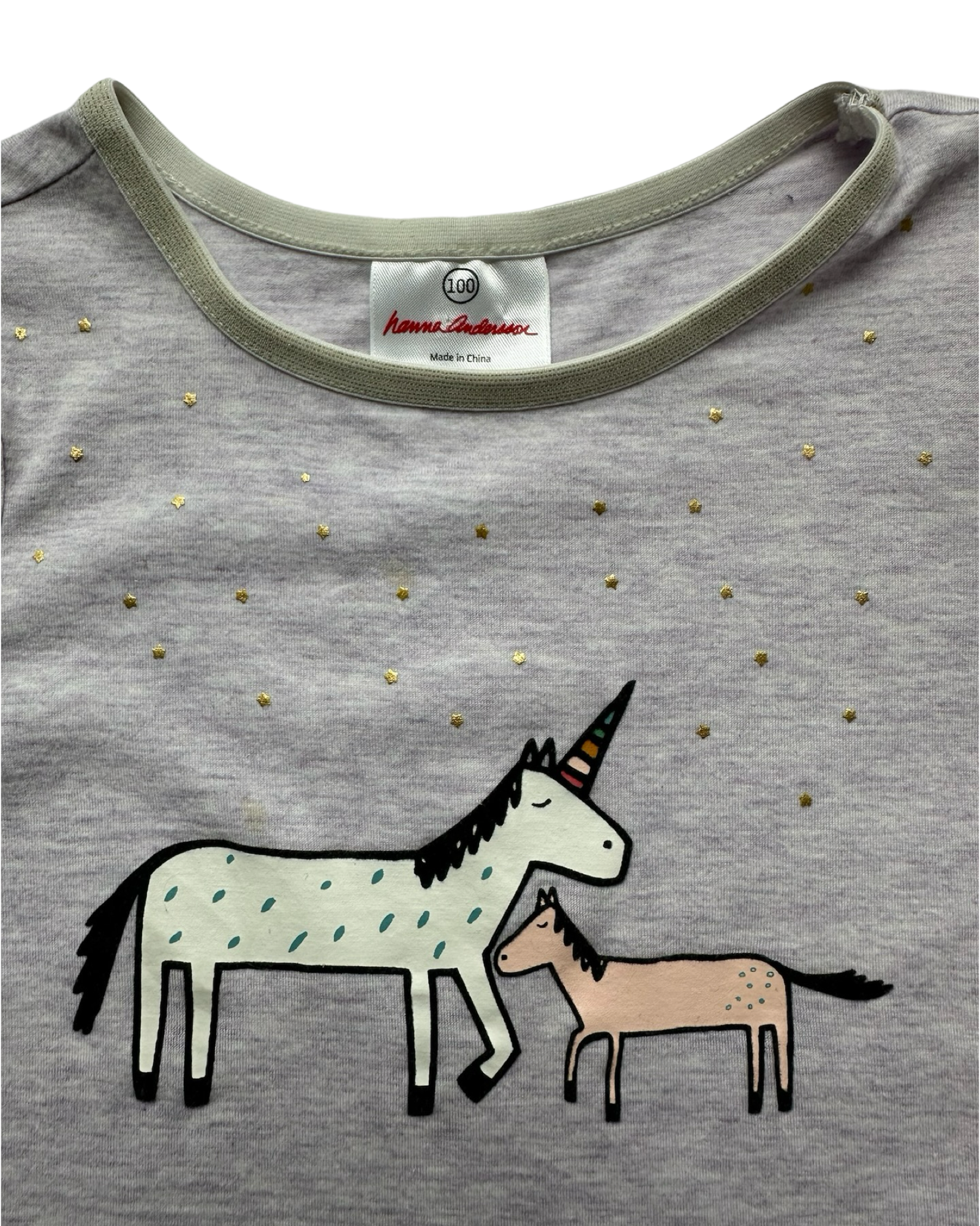 4T (100-cm) Toddler Girls Hanna Andersson Gray Unicorn Shirt Top