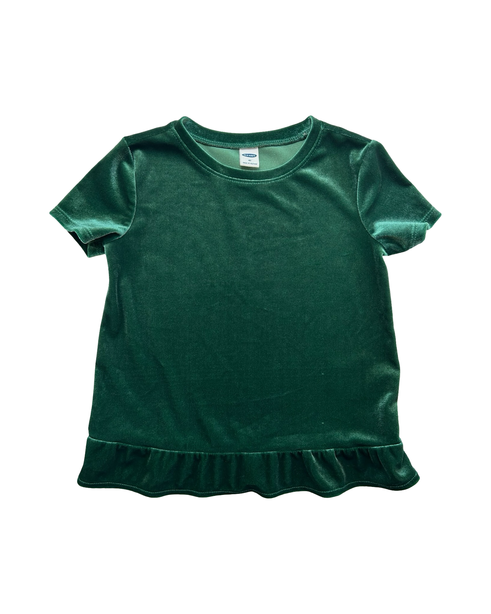 4T Toddlers Girls Old Navy Velvet Ruffle-Hem Green Top.
