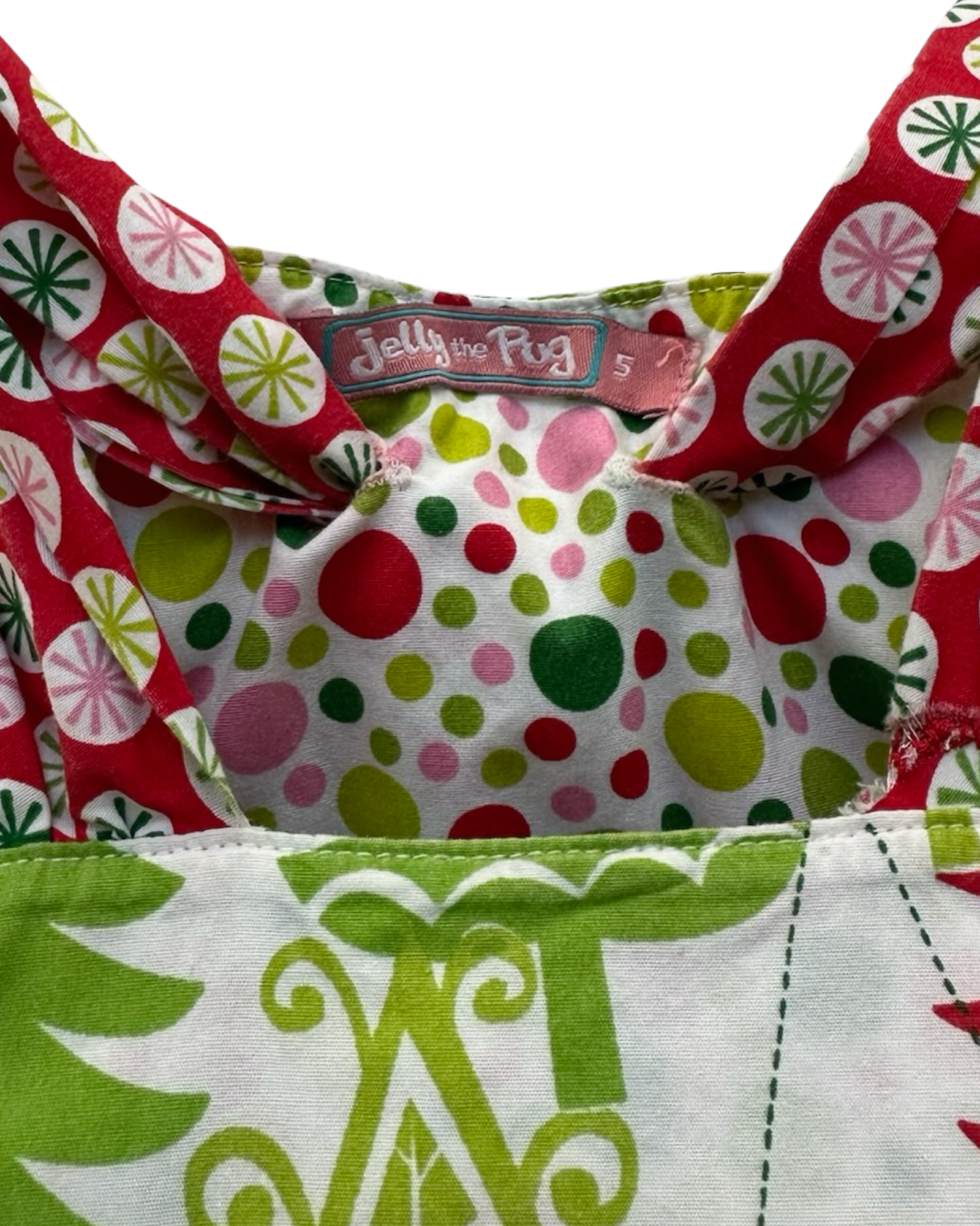 5T Toddler Girl Jelly The Pug Christmas Tree Sassy Ruffle A-Line Dress