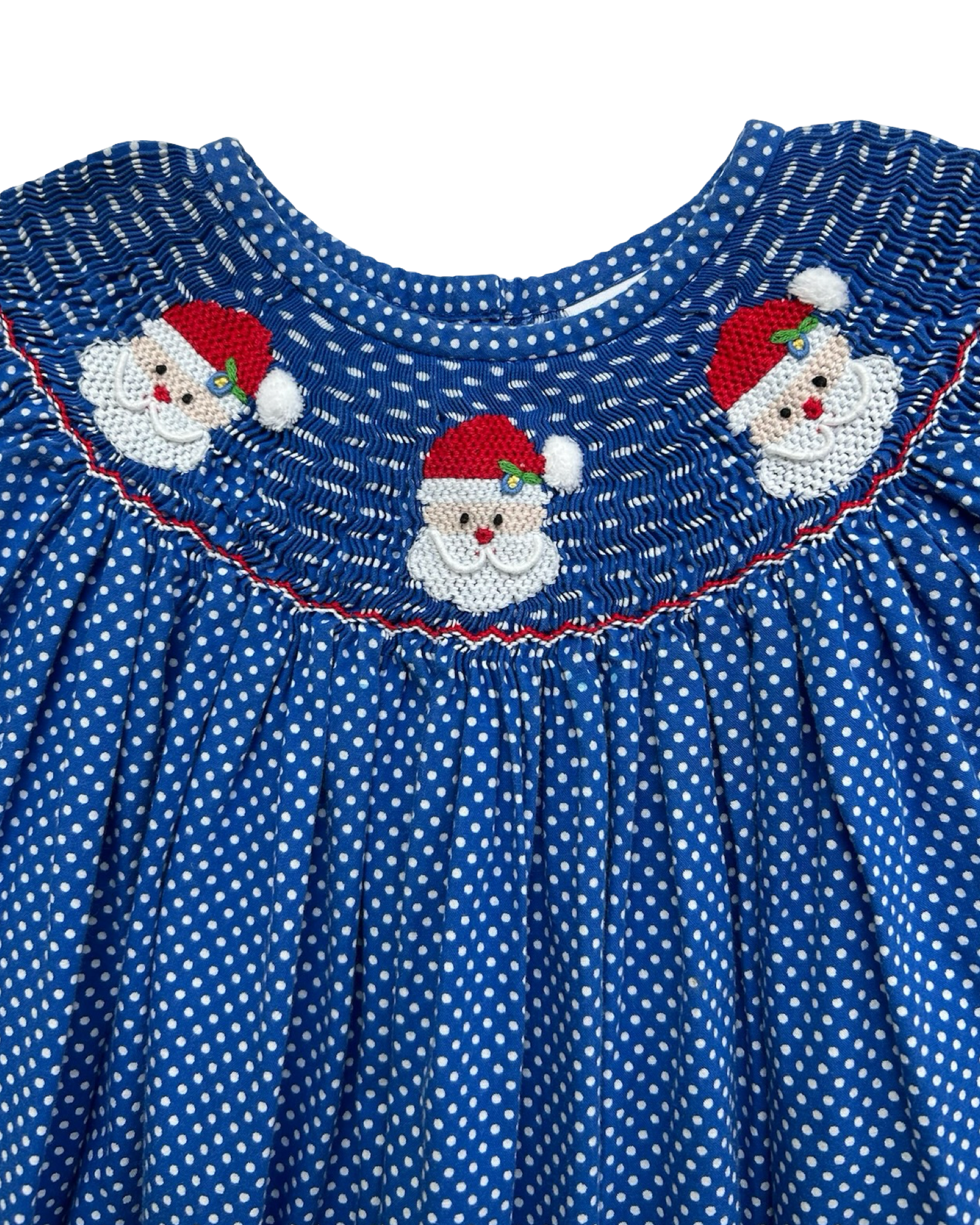 5T Toddler Girls Smocked Auctions Embroidered Christmas Santa Polka Dot Dress.