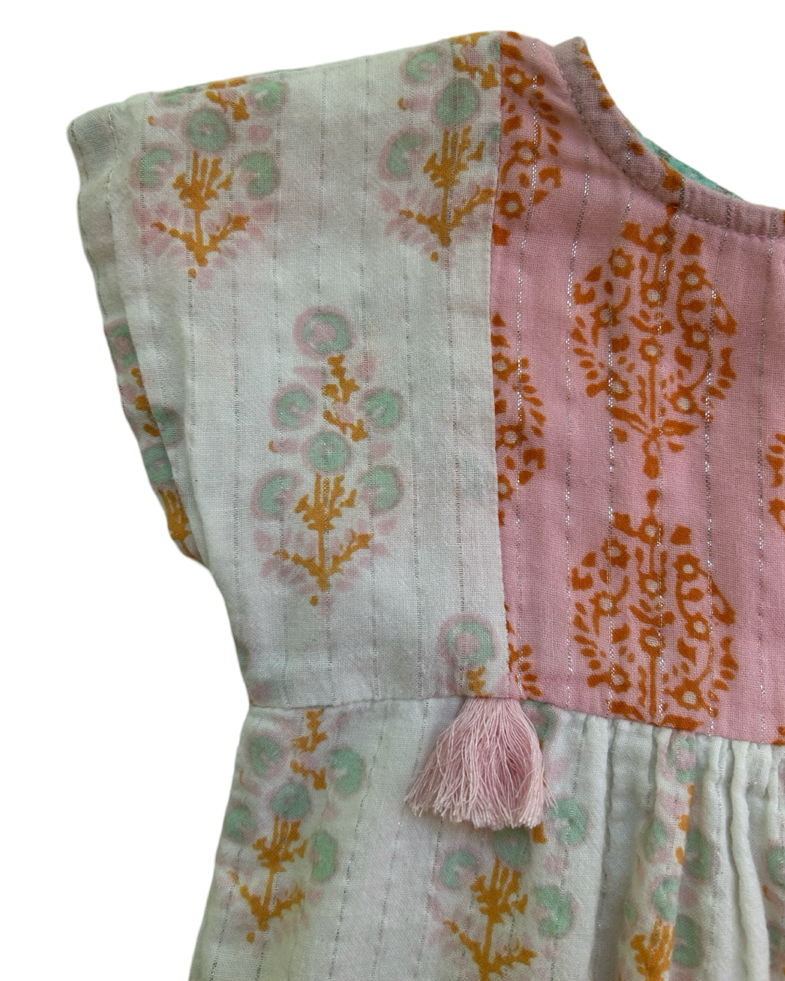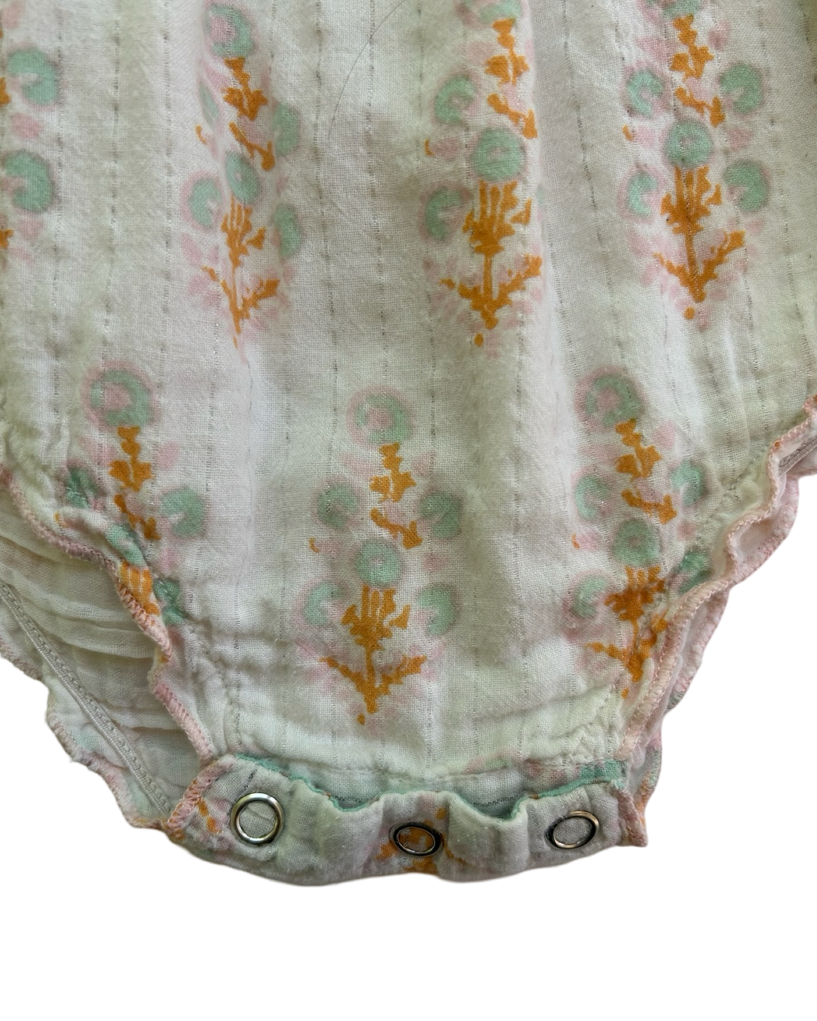 6M - 12M Baby Girls Pink Chicken Linen Bohemian Bubble Romper