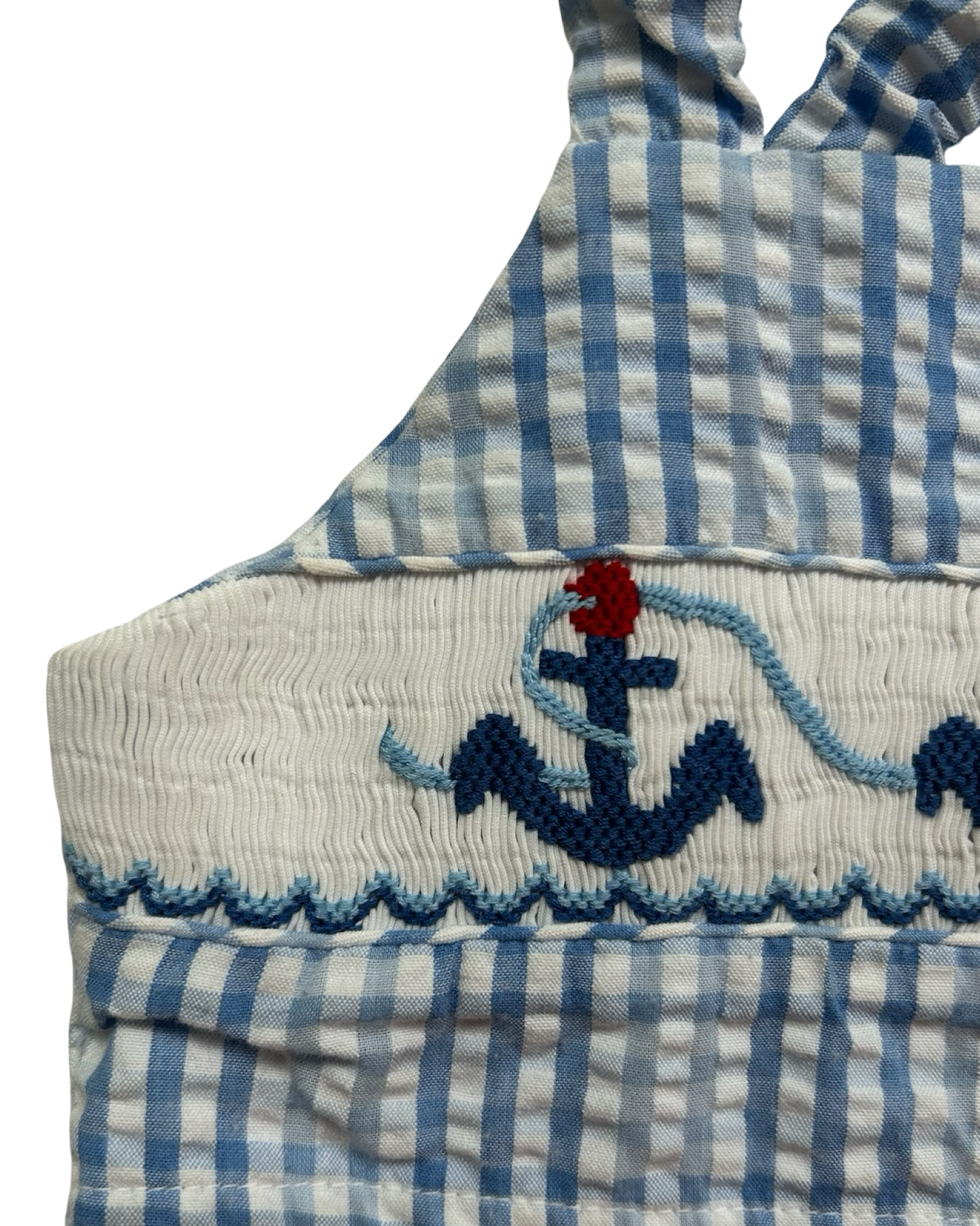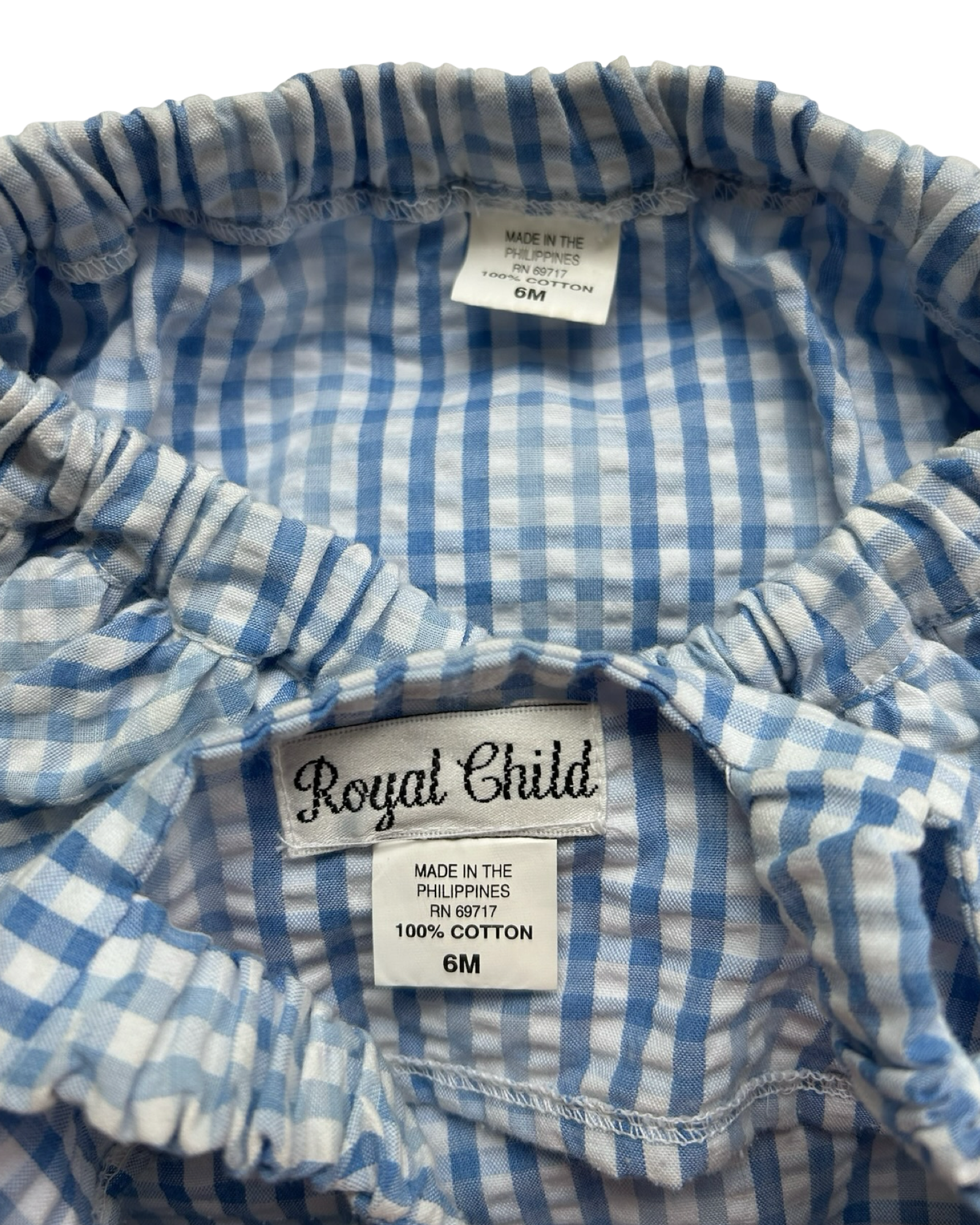6M Months Baby Girls Royal Child Checked Seersucker 2 Pieces Set Whit 3 Anchor ⚓️⚓️⚓️ On the Front.