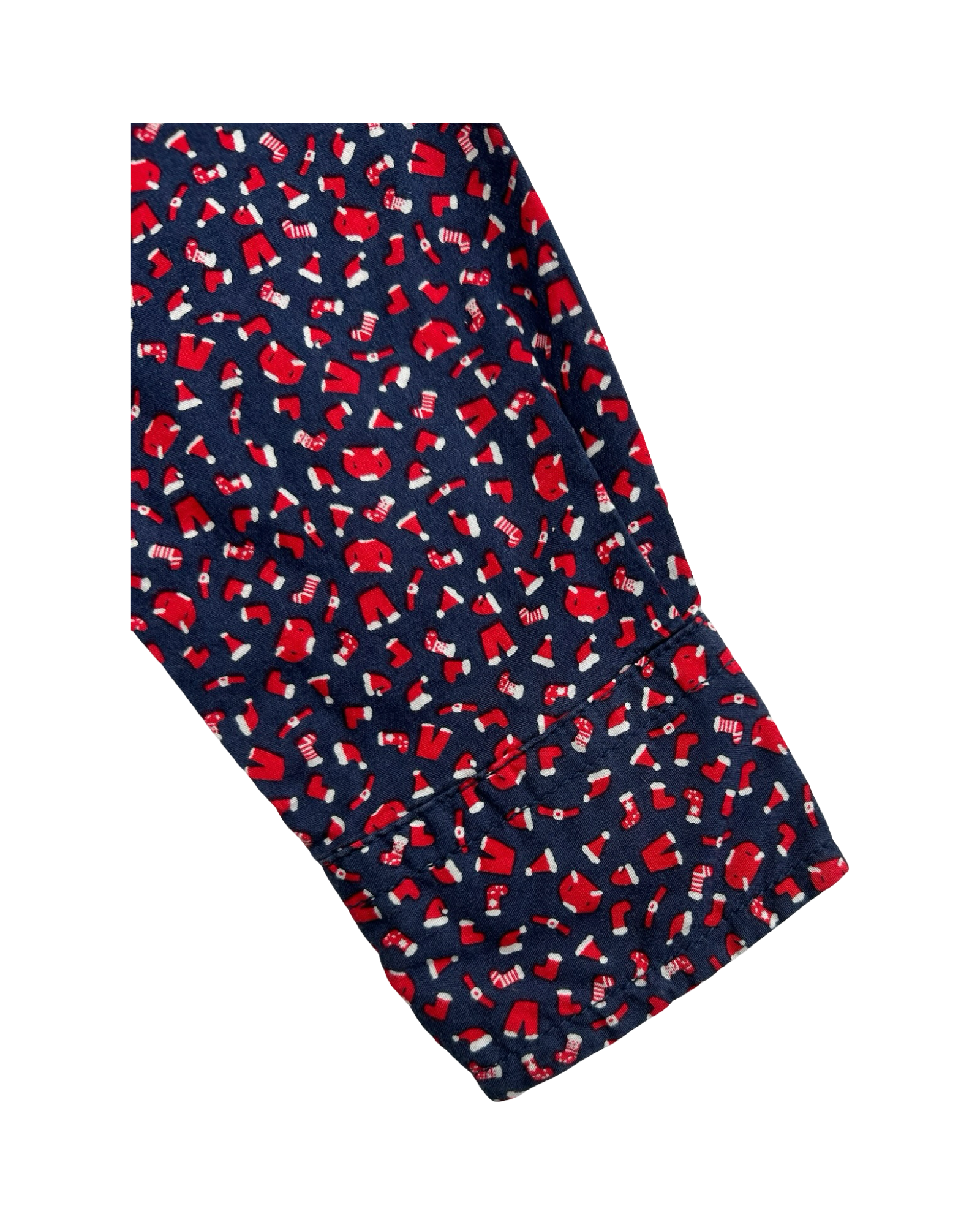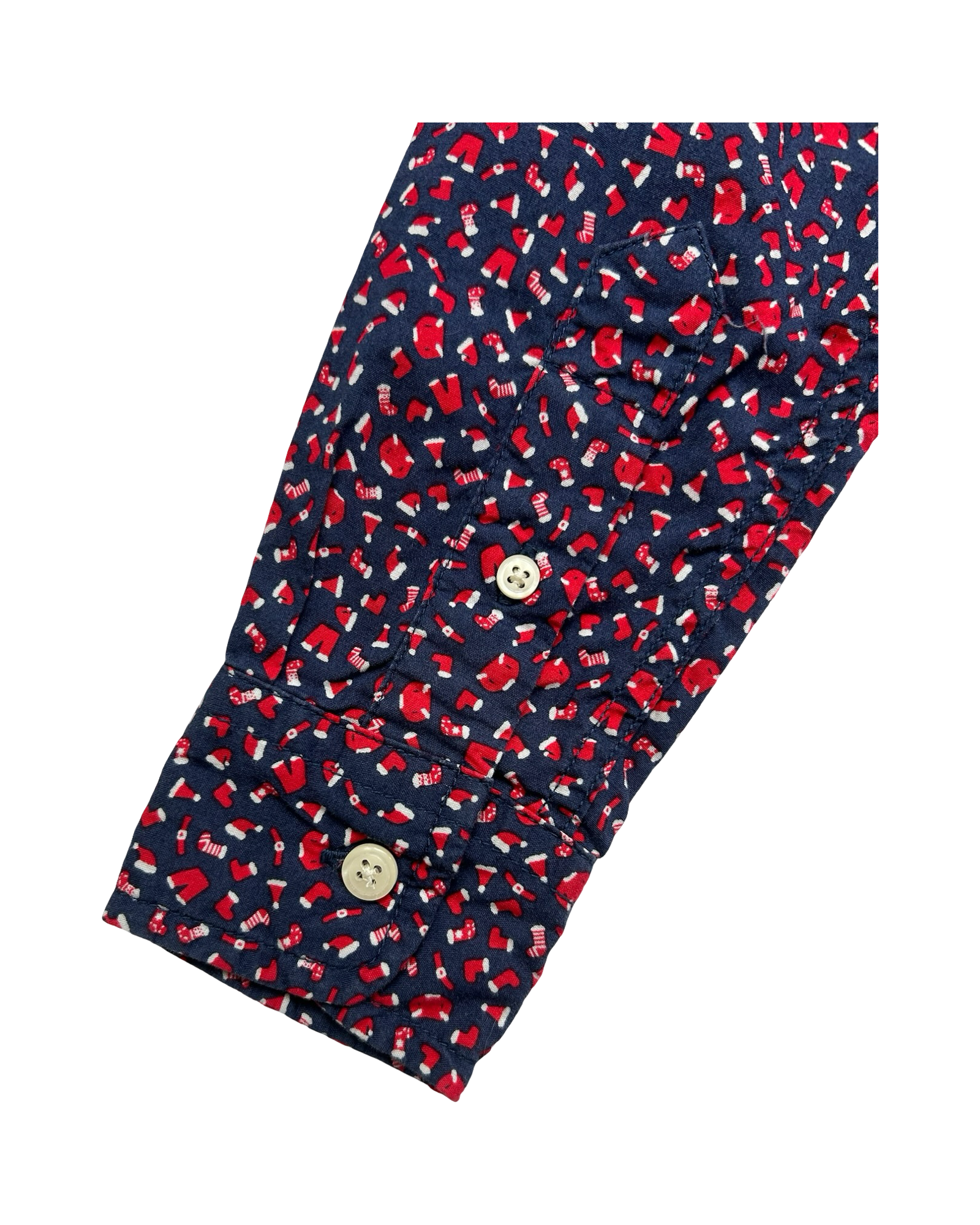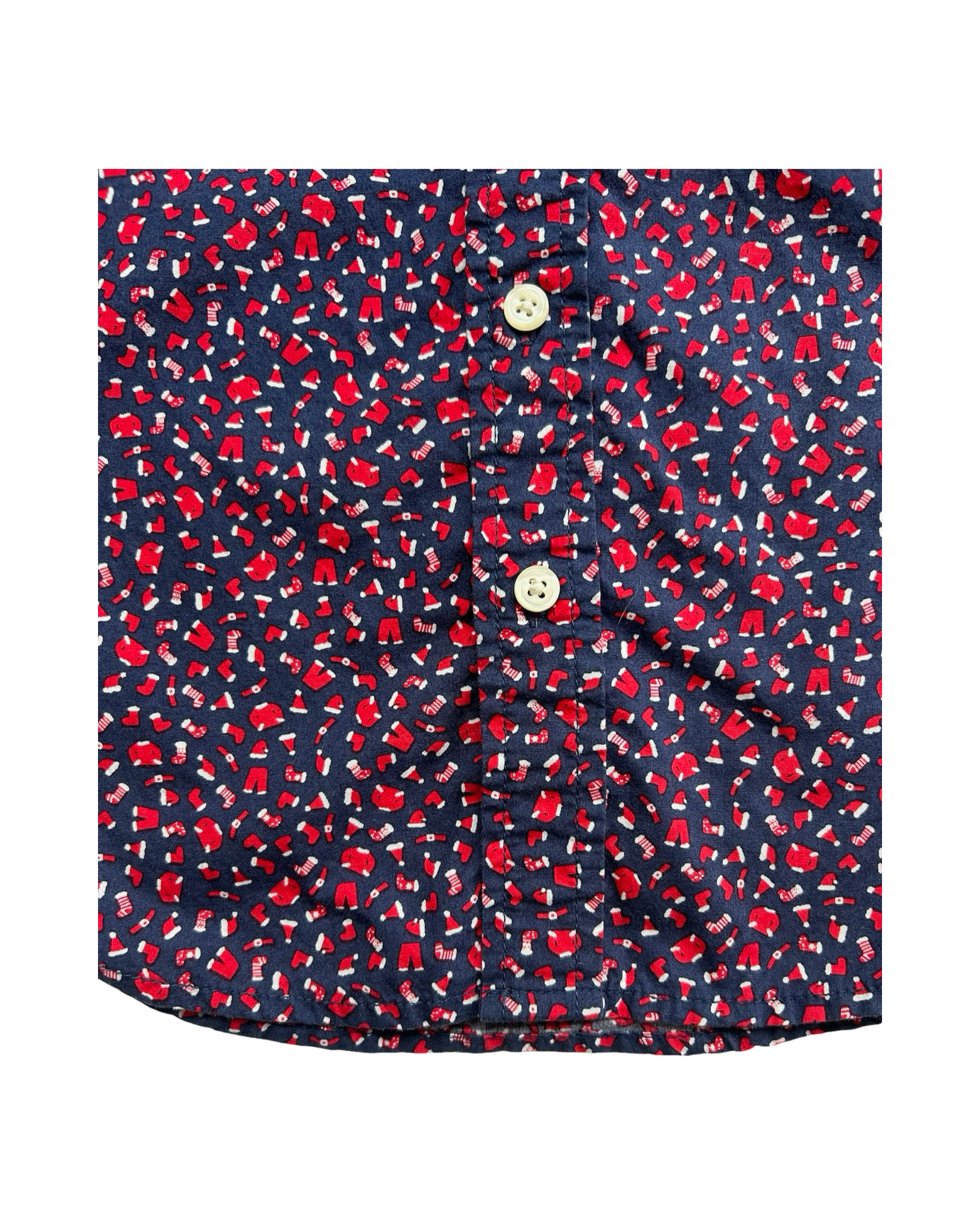 6T-7T Toddler Boys Gap Kids Christmas Blue Print Poplin Button Down Whit Pocket Shirt.