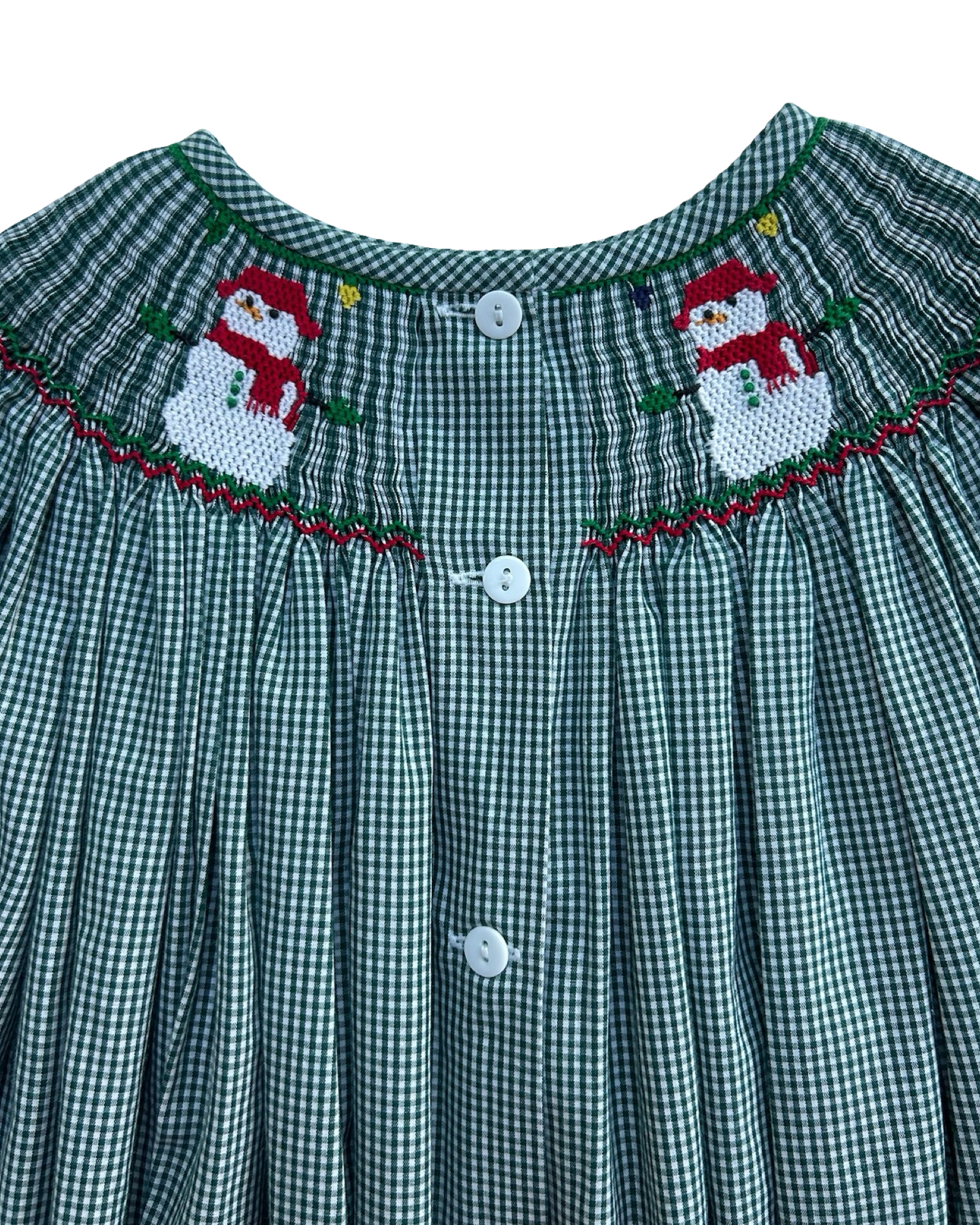 6T Toddler Girls Wish Upon A Star Gingham Smocked Christmas Snowman ⛄️ ☃️Long Sleeve Dress