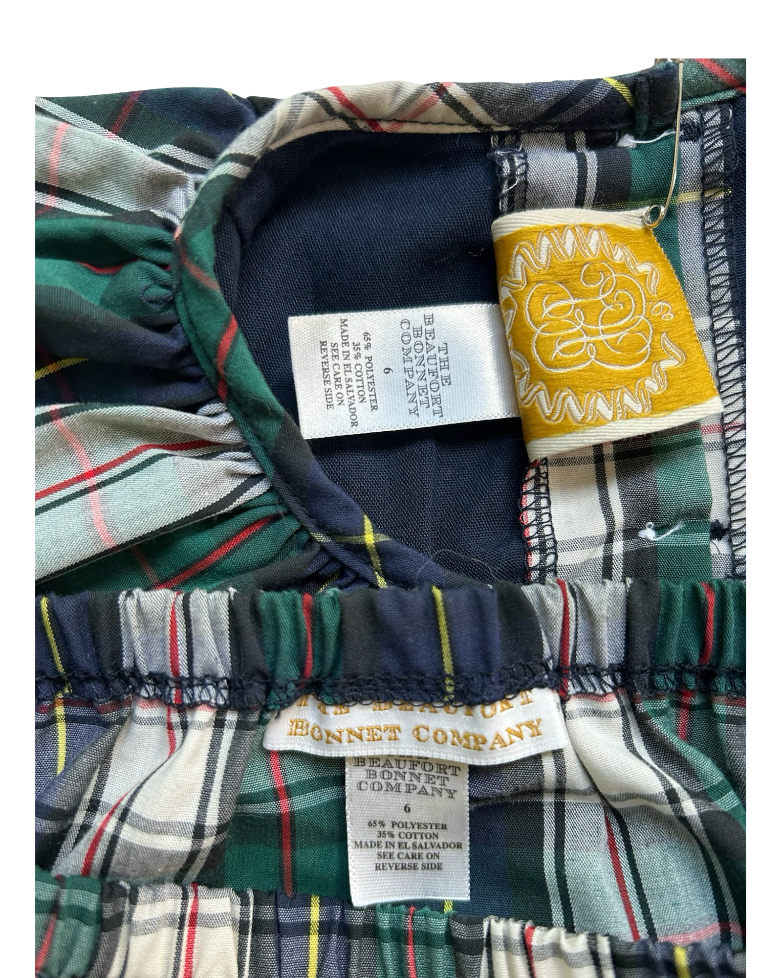 6T Toddlers Girls The Beaufort Bonnet Company Plaid Ruffle Collared, Short Sleeve And Bloomers,Two Piece Set.