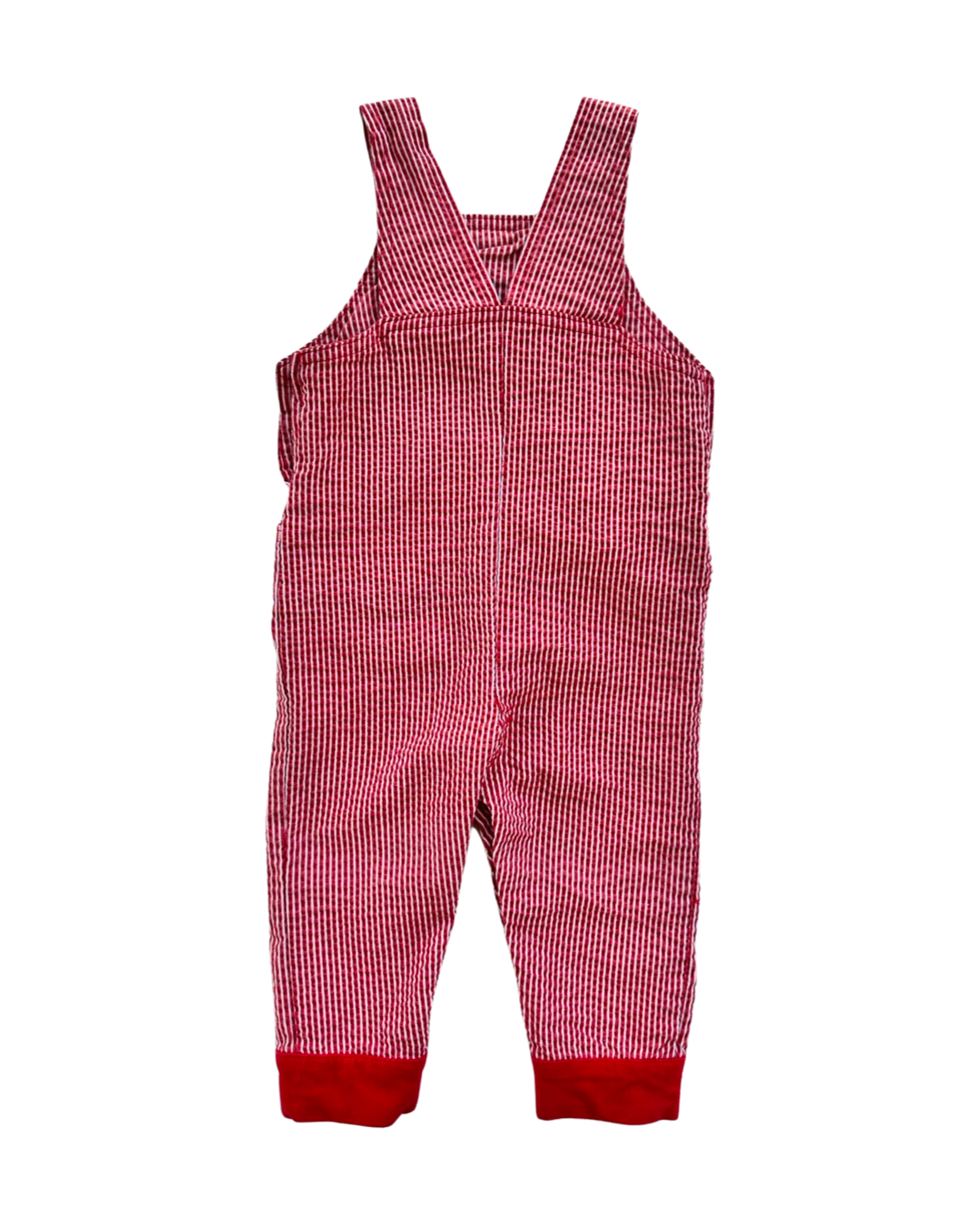 9M Baby Boy Red Striped Seersucker Christmas Tree / Santa Longall Romper