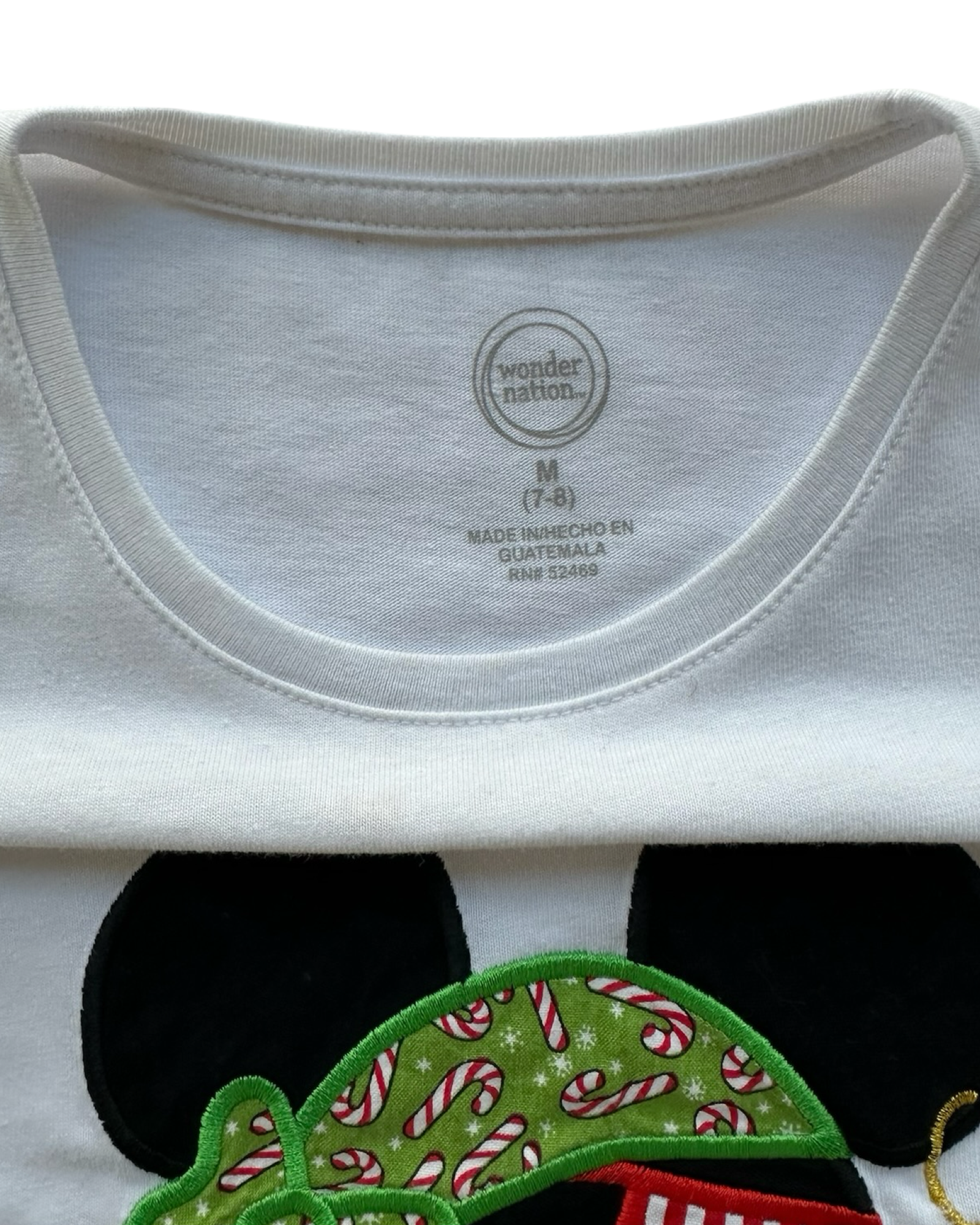 M 7Y-8Y Youth Girls Wonder Nation Christmas Phrase HO HO HO Mickey Mouse Green Bandana And Red Ornament Design